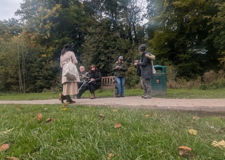 in Finsbury Park, many hands, many feet, and the three of us walking past the gates
